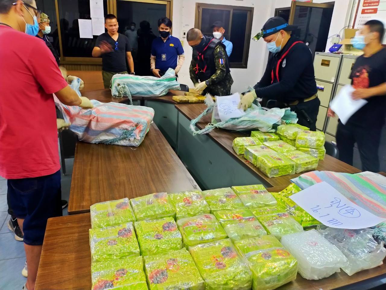 กระทั่งเวลาประมาณ 22.00 น. วันที่ 13 ส.ค. พบเห็นแสงไฟรถยนต์ไม่ทราบสี ยี่ห้อ ขับมุ่งหน้าขึ้นเขาบนชุมชนรักษ์ดอยตุง (บ้านเก้าหลัง) บ้านห้วยไคร้เหนือ หมู่ 11 ต.ห้วยไคร้ อ.แม่สาย จ.เชียงราย จึงติดตามไปกระทั่งพบจอดอยู่บริเวณตรวจยึดของกลาง สักพักกระทั่งเห็นไม่มีใครจึงแสดงตัวเข้าขอตรวจค้นแต่คนร้ายไหวตัวทัน ดับไฟรถ เร่งเครื่องอาศัยความมืดหลบหนีไปได้ ตรวจสอบโดยรอบพบกระสอบภายในมีของกลางยาเสพติดดังกล่าว จึงบันทึกไว้เป็นหลักฐานก่อนส่ง สภ.แม่สาย ดำเนินการตามขั้นตอนกฎหมายต่อไป