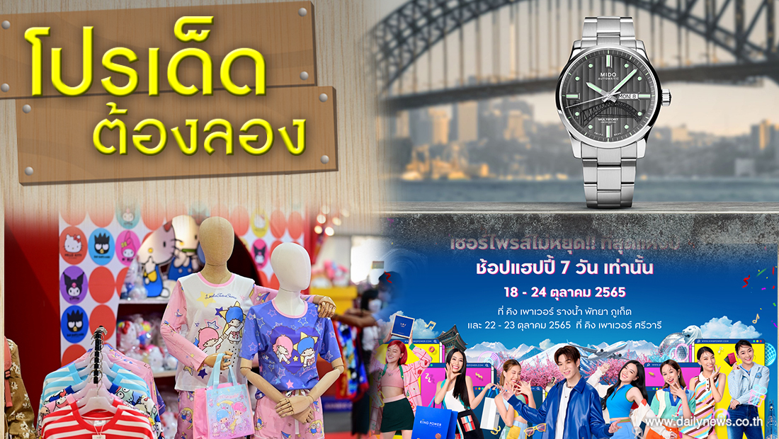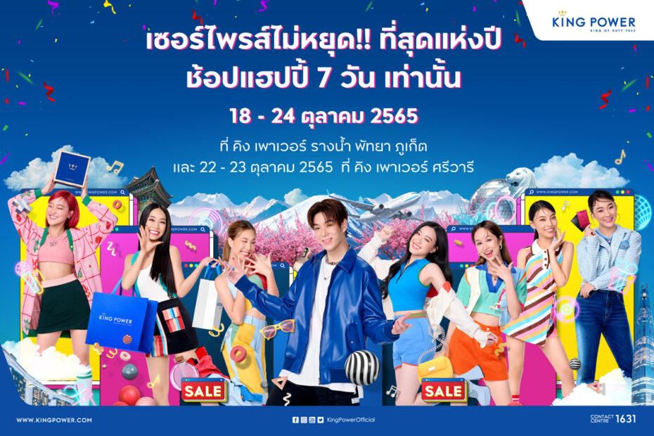 @ คิง เพาเวอร์ เซอร์ไพรส์นักช้อปกับแคมเปญ “KING POWER 33 rd ANNIVERSARY DELIGHTS & SURPRISES 2022” พบส่วนลดสูงสุด 30% พร้อมส่วนลดเพิ่มและสิทธิประโยชน์ระหว่างวันที่ 18 – 24 ตุลาคมนี้ ที่ คิง เพาเวอร์ รางน้ำ, พัทยา, ภูเก็ต และศรีวารี (เฉพาะวันเสาร์-อาทิตย์) และที่ท่าอากาศยานสุวรรณภูมิ ดอนเมือง เชียงใหม่ และภูเก็ต พิเศษตั้งแต่วันนี้ – 31 ตุลาคม 2565 ยังมีโปรโมชั่นให้ได้ลุ้นรับของรางวัล อาทิ กะรัตรีวอร์ด, ทริปต่างประเทศ และสินค้าแบรนด์เนมชั้นนำ สอบถามเพียง Add LINE Official Account : @kingpower