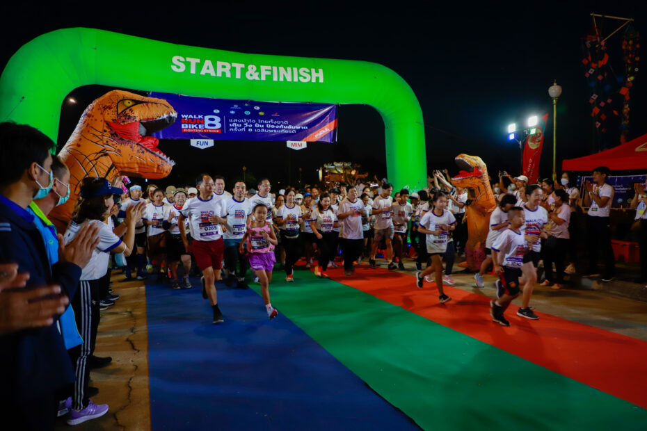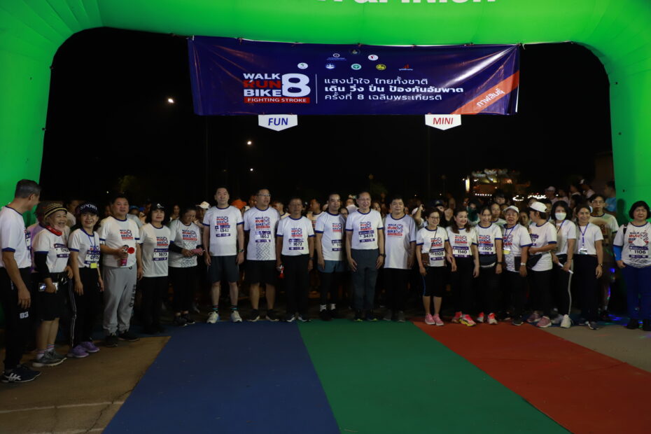 นพ.อภิชัย ลิมานนท์ นายแพทย์สาธารณสุขจังหวัดกาฬสินธุ์ กล่าวว่า จังหวัดกาฬสินธุ์ ในปีงบประมาณ 2565 มีผู้ป่วยได้รับการวินิจฉัยเป็นโรคหลอดเลือดสมอง จำนวน 2,324 ราย เสียชีวิต 125 ราย คิดเป็นร้อยละ 5.38 โรคหลอดเลือดสมองมักพบในผู้ที่มีประวัติโรคความดันโลหิตสูง โรคเบาหวาน ซึ่งเป็นโรคหนึ่งที่ทำลายคุณภาพชีวิตของประชากร ส่งผลกระทบทั้งต่อผู้ป่วย ครอบครัว สังคม จังหวัดกาฬสินธุ์ ได้ตระหนักถึงปัญหาเหล่านี้จึงได้จัดงาน “แสงนำใจไทยทั้งชาติ เดิน วิ่ง ปั่น ป้องกันอัมพาต ครั้งที่ 8 เฉลิมพระเกียรติ” ขึ้นเพื่อสร้างความรู้ ความเข้าใจที่ถูกต้องในการป้องกัน ดูแล และรักษาอย่างถูกต้อง เพื่อเป็นการตอกย้ำความสำคัญของการออกกำลังกายในการป้องกันโรคหลอดเลือดสมอง ส่งเสริมให้ประชาชนชาวกาฬสินธุ์ ออกกำลังกาย โดยมีผู้สมัครเข้าร่วมกิจกรรมกว่า 1,756 คน