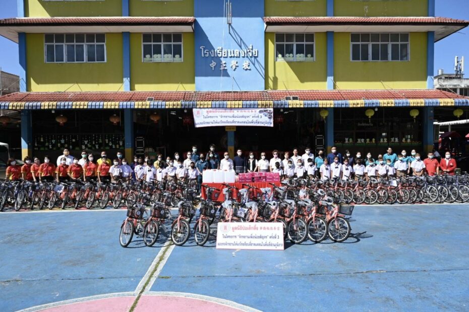 ภายใต้โครงการจักรยานเพื่อน้องสัญจร ครั้งที่ 3 ประจำปี 2565 รวมจำนวน 45 โรงเรียน มอบรถจักรยาน จำนวน 900 คัน พร้อมมอบหน้ากากอนามัย แอลกอฮอล์ รวมถึงมอบค่าพาหนะให้กับโรงเรียนที่เดินทางมารับ รวมงบประมาณทั้งสิ้น 1,537,807.50 บาท (หนึ่งล้านห้าแสนสามหมื่นเจ็ดพันแปดร้อยเจ็ดบาทห้าสิบสตางค์) เพื่อให้เด็กนักเรียนสามารถใช้จักรยานเดินทางมาโรงเรียนได้อย่างสะดวก อีกทั้งยังเป็นการส่งเสริมให้เด็กนักเรียนได้ออกกำลังกาย เรียนรู้กฎจราจร เรียนรู้การแบ่งปัน รวมถึงการดูแลรักษาสิ่งของส่วนรวมและใช้ประโยชน์ได้อย่างถูกต้อง โดยเมื่อเด็กนักเรียนจบการศึกษา จักรยานจะถูกส่งต่อให้แก่เด็กนักเรียนในรุ่นต่อไป โดยมี คุณครู และตัวแทนนักเรียนจากโรงเรียนต่างๆ ร่วมในพิธี พร้อมด้วย สมาคม/มูลนิธิแต่ละจังหวัดเป็นผู้ประสานงานและร่วมในพิธี
