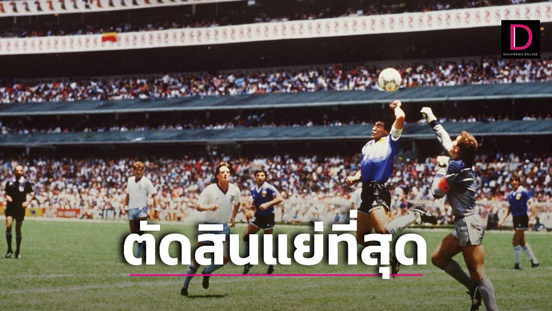 เผยผลสำรวจความเห็นของแฟนฟุตบอลจำนวน 2,000 ราย ที่จัดทำโดยซัมซุง สหราชอาณาจักร ในหัวข้อเหตุการณ์ตัดสินที่เลวร้ายที่สุดในประวัติศาสตร์ฟุตบอลโลก ปรากฏว่า อันดับ 1 แฟนบอลมากสุด 37% ยกให้เป็นประตูหัตถ์พระเจ้าของ ดิเอโก มาราโดนา ที่ใช้มือชกบอลเข้าประตูทีมชาติอังกฤษ ในรอบก่อนรองชนะเลิศ เมื่อปี 1986 แต่ อาลี บิน นัสเซอร์ ผู้ตัดสินชาวตูนิเซีย ไม่เห็นแฮนด์บอล