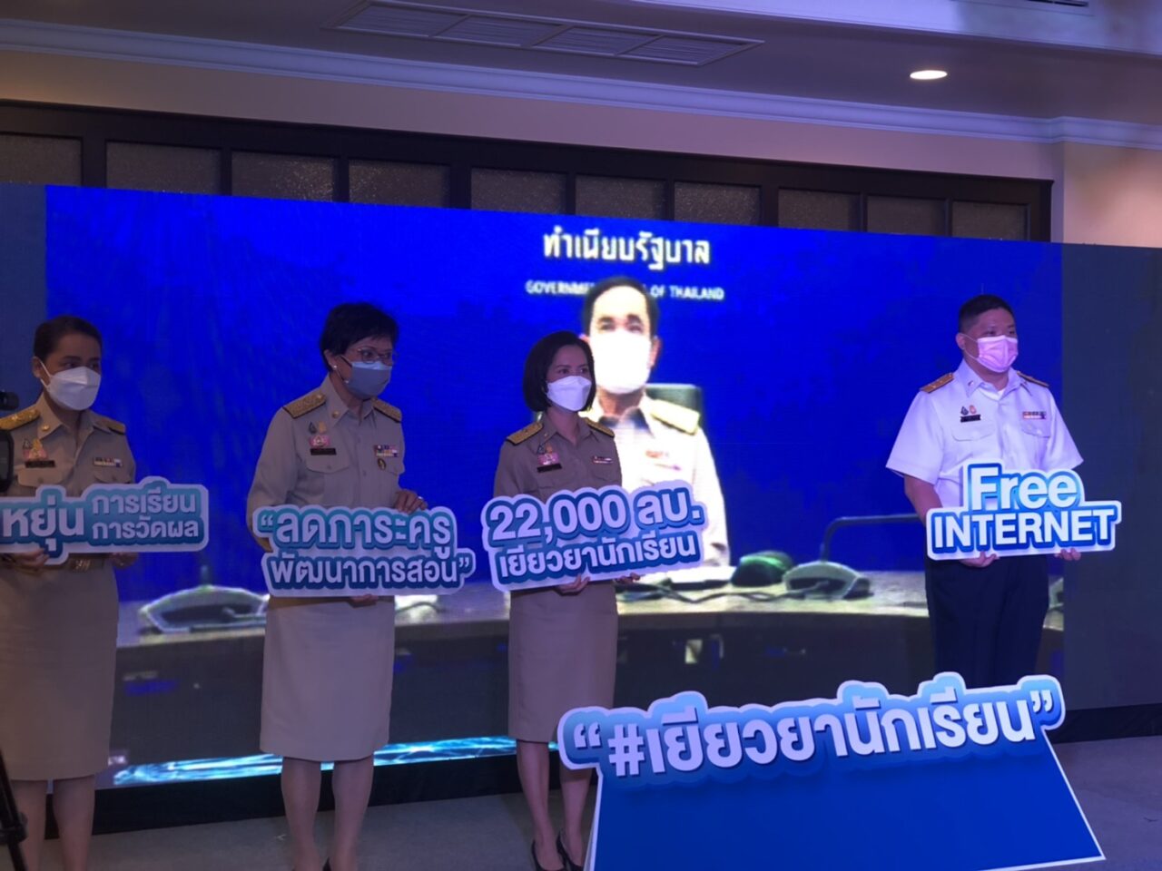 ทั้งนี้ ในระหว่างการแถลงข่าว ได้รับเกียรติจากนายกรัฐมนตรี พลเอกประยุทธ์ จันทร์โอชา ถ่ายทอดสัญญาณผ่านระบบออนไลน์เข้ามาร่วมในพิธี โดยนายกรัฐมนตรีกล่าวถึงความมุ่งมั่นที่จะช่วยเหลือผู้ปกครองในภาวะวิกฤติ และส่งเสริมให้นักเรียนนักศึกษาได้รับการเรียนรู้อย่างเต็มที่ตามศักยภาพ โดยฝากให้ รมว.ศธ. เร่งมอบเงินให้ถึงมือผู้ปกครองโดยเร็ว และขอบคุณกระทรวงศึกษาธิการที่ให้ความสำคัญกับเรื่องนี้เป็นอย่างดี พร้อมทั้งกล่าวชื่นชมการประสานงานระหว่างกระทรวงศึกษาธิการ กับกระทรวงดิจิทัลเพื่อเศรษฐกิจและสังคม ที่ร่วมมือร่วมใจกันทำให้เกิดประโยชน์แก่ผู้เรียนได้อย่างแท้จริง.