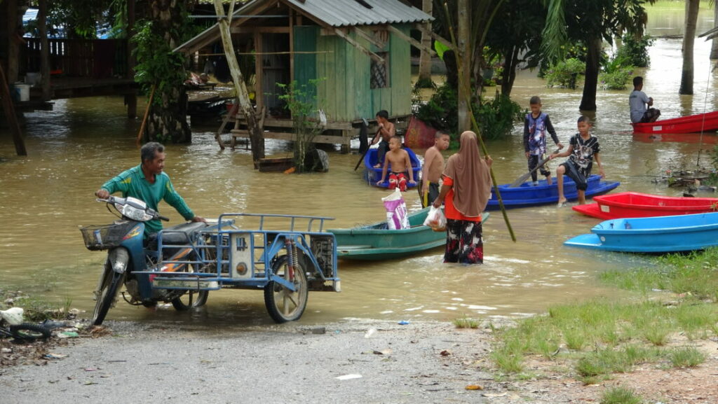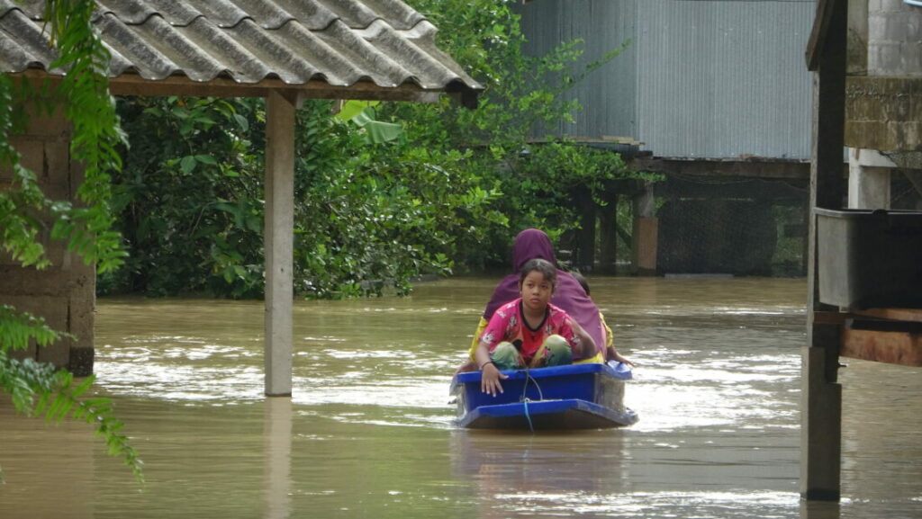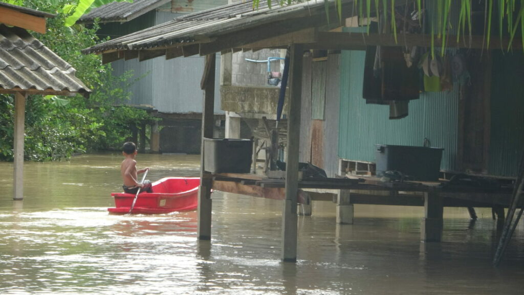 เมื่อวันที่ 13 พ.ย. สภาพอากาศในพื้นที่ จ.ปัตตานี หลายพื้นที่ยังคงมีฝนตกลงมา หนักมากในบางพื้นที่ ส่งผลให้ระดับน้ำในแม่น้ำปัตตานีสูงขึ้น ประกอบกับเมื่อ 2 วันที่ผ่านมา เขื่อนบางลาง จ.ยะลา ได้เปิดประตูเขื่อนเพื่อระบายน้ำ ทำให้มวลน้ำจากจังหวัดยะลา และน้ำป่า ไหลลงมาสมทบในแม่น้ำปัตตานี ทำให้หมู่บ้านที่อยู่ในพื้นที่ราบลุ่ม ที่ติดกับริมแม่น้ำปัตตานีได้รับผลกระทบ น้ำได้เอ่อล้นตลิ่งเข้าท่วมบ้านเรือน และพื้นที่ทำการเกษตรของประชาชนในหลายพื้นที่ โดยพื้นที่ได้รับผลกระทบ ณ ตอนนี้ ประกอบด้วย อำเภอเมือง มี ต.ปะกาฮารัง ต.บาราเฮาะ และอำเภอหนองจิก มี ต.ลิปะสะโง ต.ดอนรัก ต.ปากาลือสง อ.สายบุรี อ.ยะหริ่ง เช่นเดียวกับประชาชนที่อาศัยติดกับทะเล ได้รับผลกระทบจากมรสมลมแรง ทำให้ต้นไม้ บ้านเรือน ได้รับความเสียหาย