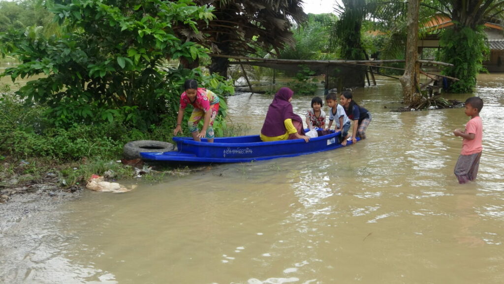 โดยขณะนี้หลายพื้นที่ที่น้ำท่วมมีชาวบ้านได้ใช้เรือเป็นยานพาหนะในการสัญจรเข้ามาไปในหมู่บ้าน พร้อมทั้งนำรถจักรยานยนต์ รถยนต์ ของมีค่าต่างๆ และสัตว์เลี้ยง เคลื่อนย้ายไว้ในที่สูงก่อนชั่วคราว และหากไม่มีการปล่อยน้ำจากเขื่อนบางลางเพิ่ม คาดว่าน้ำที่เอ่อล้นหลายตำบลจะลดระดับลงภายในไม่กี่วันนี้