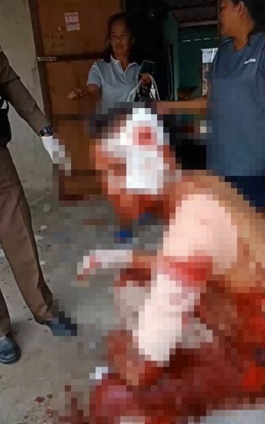 “ผ่านไปประมาณ 15 นาที ฝ่ายหัวหน้างานได้ขี่ จยย. เข้ามา พร้อมเพื่อนรวม 4 คน มาจอดที่หน้าห้องผู้ได้รับบาดเจ็บ ก่อนมายืนเรียกให้ออกมาจากห้อง เป็นจังหวะที่ทั้ง 4 คน ถือมีดยืนรออยู่ จึงพุ่งเข้ารุมฟันและแทงไม่ยั้ง หลังจากที่คนเจ็บล้มฟุบลงไปจมกองเลือด ทั้ง 4 คน ก็รีบขี่ จยย. หนีไป” เพื่อนบ้าน กล่าว