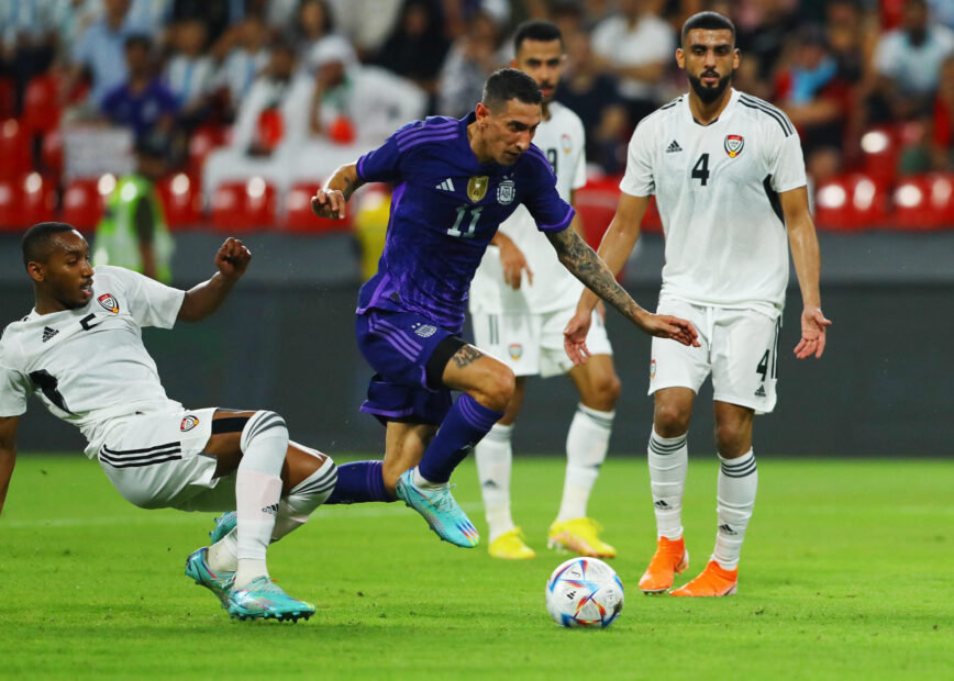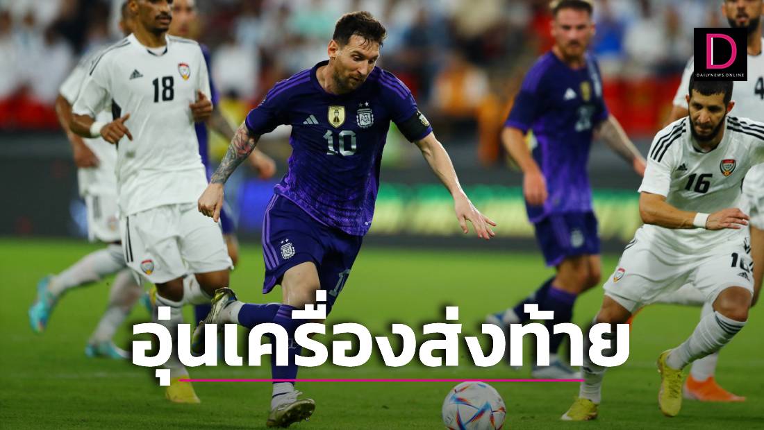 ศึกฟุตบอลอุ่นเครื่องทีมชาติ เมื่อวันพุธที่ 16 พ.ย. ที่ผ่านมา “ฟ้าขาว” อาร์เจนตินา ลงสนามลับแข้งเกมสุดท้ายก่อนทำศึกฟุตบอลโลก 2022 ด้วยการเจอกับ สหรัฐอาหรับเอมิเรตส์ ที่กรุงดาบูดาบี ผลปรากฏว่าทัพนักเตะ “ฟ้าขาว” เรียกความมั่นใจด้วยการถล่มเจ้าถิ่นขาดลอย 5-0 โดยได้ประตูจาก ฮูเลียน อัลวาเรซ นาทีที่ 17 อังเคล ดิ มาเรีย 2 ประตูนาทีที่ 25 และ 36 ลีโอเนล เมสซี นาทีที่ 44 ปิดท้ายด้วย ฮัวกิน กอเรอา นาทีที่ 60 โดยทัพนักเตะ “ฟ้าขาว” จะประเดิมสนามในศึกเวิลด์คัพ ด้วยการดวลกับ ซาอุดิอาระเบีย ในวันที่ 22 พ.ย. นี้