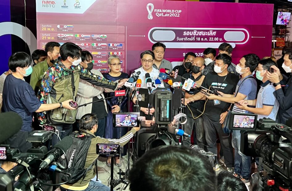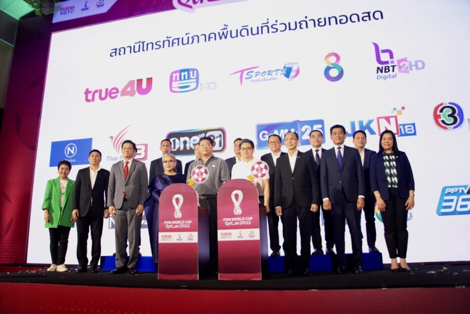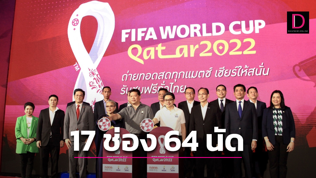 ผู้ว่าการ กกท. กล่าวต่อว่า การถ่ายทอดสดฟุตบอลโลก 2022 ครั้งนี้ จะถ่ายทอดทางฟรีทีวีทั้งหมด 17 ช่อง ประกอบด้วยช่อง TRUE4U, T Sports 7, JKN 18, CH3, MONO29, CH7, ไทยรัฐTV, ThaiPBS, CH8, PPTV36, NBT, GMM25, 9MCOT, Nation TV, AMARIN 34HD, one31 และ ททบ.5 ซึ่งแม้เวลาจะกระชั้นชิด แต่ที่ผ่านมาก็ได้มีการเรียกประชุมและหารือกับสถานีทีวีมาบ้างแล้ว และยืนยันว่าคนไทยจะได้ชมฟุตบอลโลก 64 นัดแบบจุใจทางฟรีทีวี ตั้งแต่เกมเปิดสนาม วันที่ 20 พ.ย.นี้ ไปจนถึงนัดชิงชนะเลิศ วันที่ 18 ธ.ค.65 โดยอยากให้คนไทยทุกคนชมการแข่งขันรายการนี้ด้วยความบันเทิง ดูเพื่อเป็นความรู้ ศึกษาวิธีการและกลยุทธ์การเล่นของทีมชาติชั้นนำระดับโลก ที่สำคัญอยากให้ดูการแข่งขันครั้งนี้อย่างสนุก โดยไม่ยุ่งเกี่ยวกับการเล่นพนันฟุตบอล