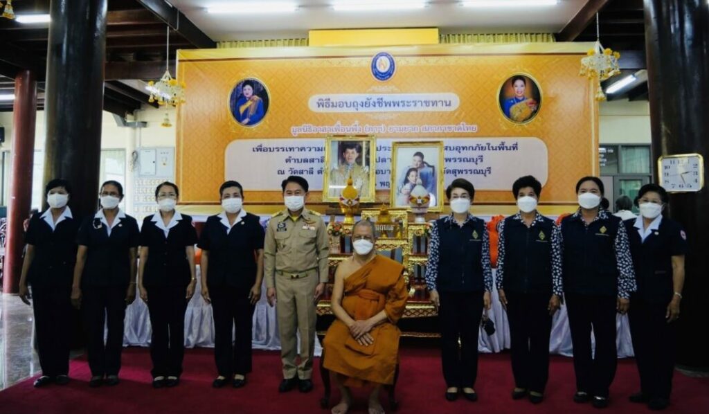 เมื่อวันที่ 20 พ.ย.65 พระเจ้าวรวงศ์เธอ พระองค์เจ้าโสมสวลี กรมหมื่นสุทธนารีนาถ และสมเด็จพระเจ้าลูกเธอ เจ้าฟ้าพัชรกิติยาภา นเรนทิราเทพยวดี กรมหลวงราชสาริณีสิริพัชร มหาวัชรราชธิดา โปรดเกล้าโปรดกระหม่อมให้ นายณัฐภัทร สุวรรณประทีป ผู้ว่าราชการจังหวัดสุพรรณบุรี เป็นประธานในพิธีมอบถุงยังชีพพระราชทาน ของมูลนิธิอาสาเพื่อนพึ่ง (ภาฯ) ยามยาก สภากาชาดไทย แก่ราษฎรผู้ประสบอุทกภัยในพื้นที่อำเภอบางปลาม้า จำนวน 2,400 ชุด และวัดสาลี จำนวน 120 ชุด เพื่อบรรเทาความเดือดร้อนให้กับราษฎรในพื้นที่จังหวัดสุพรรณบุรี