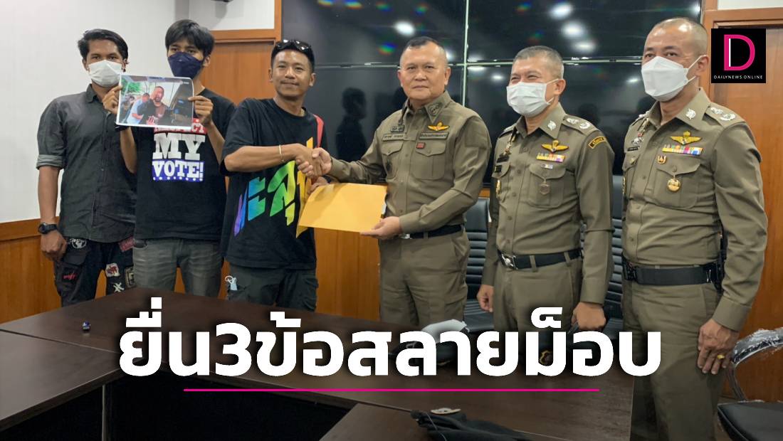 ต่อมาเวลา 15.30 น. นายจตุภัทร์ บุญภัทรรักษา หรือ “ไผ่ ดาวดิน” เดินทางมาร่วมสมทบกับมวลชน พร้อมเข้ายื่นหนังสือ 3 ข้อเรียกร้องภายในสำนักงานตำรวจแห่งชาติ โดยมี พล.ต.ท.สราวุฒิ การพานิช ผู้ช่วย ผบ.ตร. เป็นผู้รับเรื่อง