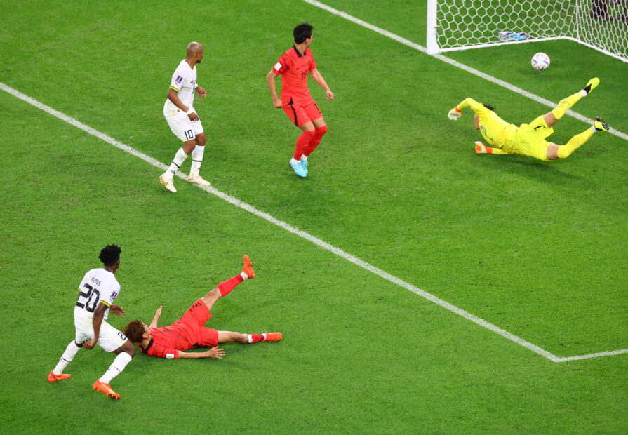 ศึกฟุตบอลโลก 2022 รอบแรก กลุ่ม H เมื่อวันจันทร์ที่ผ่านมา ทีมชาติเกาหลีใต้ สู้สุดใจแต่ยังไม่วาย ตกเป็นฝ่ายพ่าย กานา แบบมันหยด 2-3 ต้องไปลุ้นเข้ารอบในเกมส่งท้ายรอบแรกกับ โปรตุเกส วันศุกร์ที่ 2 ธ.ค.