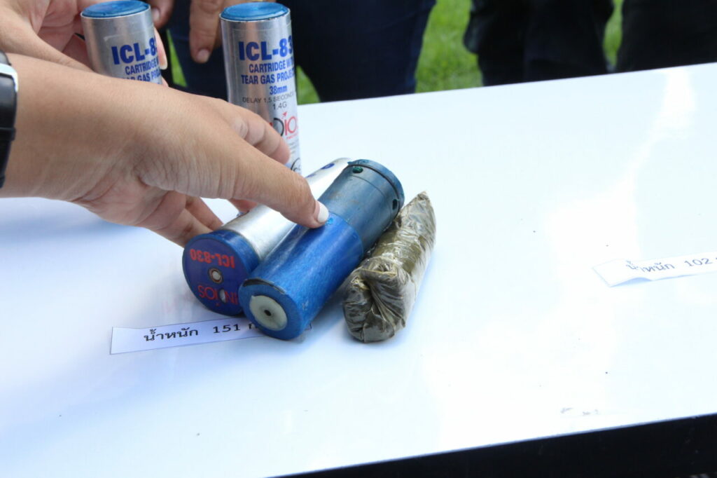 โดยส่วนที่ลอยออกไปมีเพียงส่วนที่เป็นตัวกระบอกบรรจุก๊าซน้ำตา ซึ่งทำจากพลาสติกสีน้ำเงิน ภายในบรรจุสารแก๊สน้ำตา ซึ่งสามารถลุกไหม้ได้ด้วยตัวเอง ไม่ใช่ชนิดระเบิดเหมือนที่เคยใช้ในการสลายการชุมนุมเมื่อช่วงปี 2551 ดังนั้นชนิดที่ใช้ในปัจจุบันจึงไม่เป็นอันตราย อีกทั้งการยิงแก๊สน้ำตาของเจ้าหน้าที่ เป็นการยิงเพื่อให้ควันไปยับยั้งการคุกคาม ไม่มีการยิงใส่ตัวชุมนุมโดยตรง แต่ยอมรับว่าบางครั้งทิศทางลมมีผลต่อวิถีของแก๊สน้ำตา ทำให้ไม่ไปตกในจุดเป้าหมายและอาจโดนถูกผู้ชุมนุมได้เช่นกัน แต่ส่วนตัวขณะฝึกซ้อม ก็เคยโดนแก๊สน้ำตากระแทกเข้าที่บริเวณศีรษะเช่นกัน แต่ก็ไม่ได้รับบาดแผลใดๆ เพียงมีรอยช้ำแดงเท่านั้น นอกจากนี้ปืนยิงแก๊สน้ำตา เป็นลำกล้องที่ใช้กับกระสุนแก๊สน้ำตาขนาด 38 มม. โดยเฉพาะ และลำกล้องไม่มีเกลียว ทำให้ไม่สามารถใช้คู่กับกระสุนหรือระเบิดชนิดอื่นได้ เพราะมีขนาดใหญ่กว่าตั้งแต่ 40 มม.ขึ้นไป