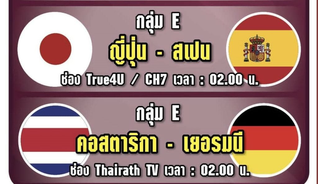 สำหรับ 2 คู่แรก ในคืนนี้ ที่คำสั่ง “จอดำ” ในระบบดาวเทียม C-Band จะเริ่มมีผล ประกอบด้วย คอสตาริกา พบ เยอรมนี เวลา 02.00 น. (ช่อง 32/ทรูสปอร์ต 5) และ ญี่ปุ่น พบ สเปน เวลา 02.00 น. (ทรูโฟร์ยู 24/ช่อง 7 HD/ทรูสปอร์ต 2).