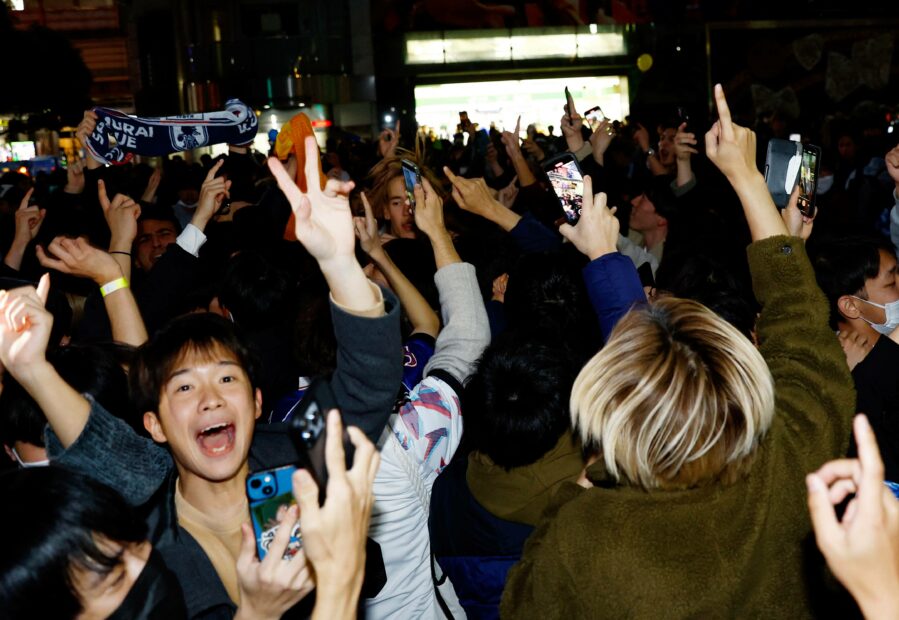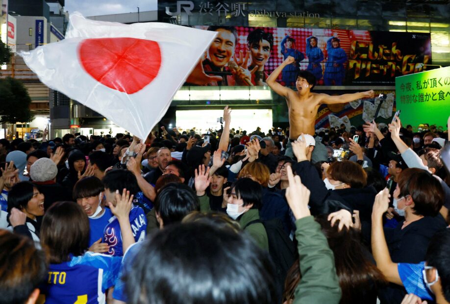 หนังสือพิมพ์ฉบับหนึ่งของญี่ปุ่น พาดหัวข่าวออนไลน์ “โดฮามีความสุขอีกครั้ง!” และเรียกว่า “ปาฏิหาริย์ในโดฮา” ส่วนแฟนบอลพากันตะโกน “นิปปอน” และหลั่งไหลไปไปฉลองที่ทางแยกชิบูย่าอันเป็นสัญลักษณ์ของโตเกียวก่อนพระอาทิตย์ขึ้น กระโดดขึ้นลงและตะโกนว่า “สู้ สู้ สู้!” โดยมีตำรวจดูแลความเรียบร้อย