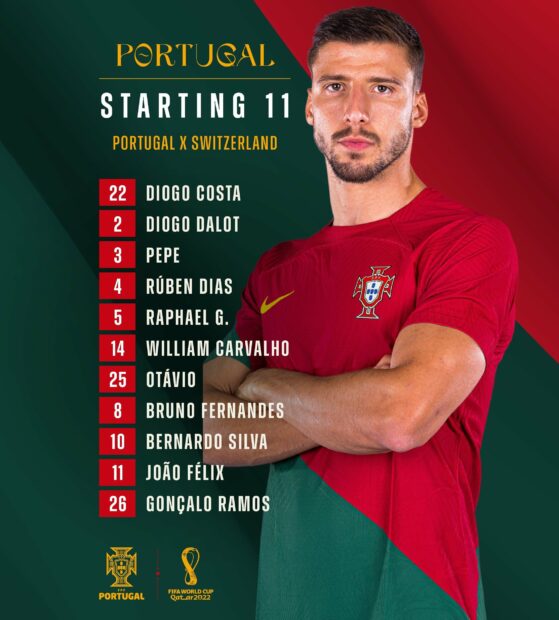 คริสเตียโน โรนัลโด หัวหอกกัปตันทีมชาติโปรตุเกส มีรายชื่อเป็นแค่ตัวสำรองเท่านั้นในศึกฟุตบอลโลก 2022 รอบ 16 ทีมสุดท้าย นัดที่ ทีมเมืองฝอยทอง จะลงฟาดแข้งกับ สวิตเซอร์แลนด์ คืนวันอังคารที่ 6 ธ.ค. ตามเวลาท้องถิ่น หรือ เวลา 02.00 น.ของวันพุธที่ 7 ธ.ค.ตามเวลาประเทศไทย