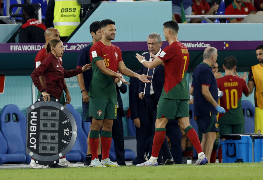 กอนซาโล รามอส หัวหอกฟอร์มฮอตทีมชาติโปรตุเกส ออกมายกย่อง คริสเตียโน โรนัลโด หัวหอกกัปตันทีมฝอยทอง เป็นทั้งผู้นำ และนักเตะต้นแบบของตน หลังเบียด “ซีอาร์ 7” กระเด็นไปนั่งเป็นตัวสำรอง แถมยังกระหน่ำแฮตทริกได้อีกต่างหากในศึกฟุตบอลโลก 2022 รอบ 16 ทีมสุดท้าย นัดถล่ม สวิตเซอร์แลนด์ ไม่เลี้ยง 6-1 เมื่อวันอังคารที่ผ่านมา