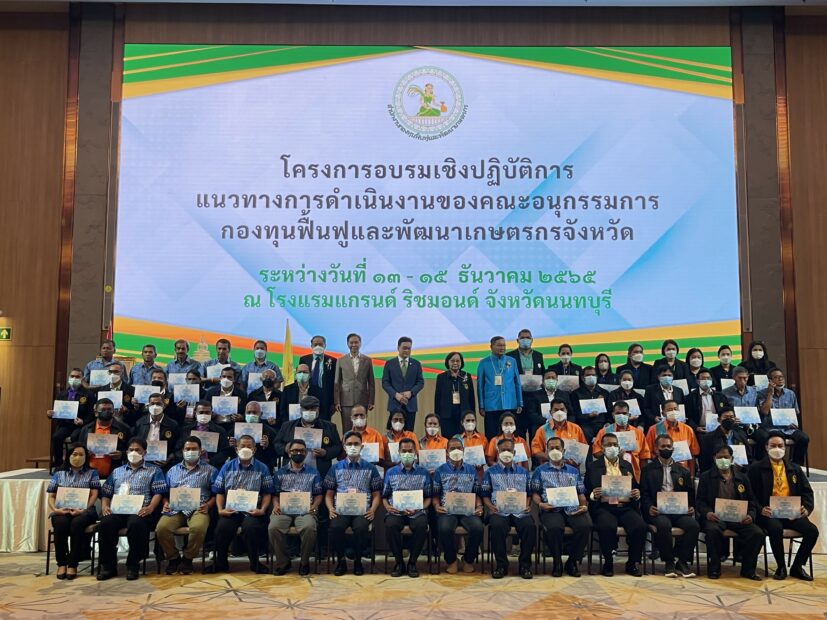 เมื่อวันที่ 14 ธ.ค. ที่โรงแรมริชมอนด์แกรนด์ จังหวัดนนทบุรี รองนายกรัฐมนตรี นายจุรินทร์ ลักษณวิศิษฏ์ ประธานกรรมการกองทุนฟื้นฟูและพัฒนาเกษตรกร เป็นประธานเปิดโครงการอบรมเชิงปฏิบัติการแนวทางการดำเนินงานของคณะอนุกรรมการกองทุนฟื้นฟูและพัฒนาเกษตรกรจังหวัด โดยมีคณะกรรมการ กฟก. คณะกรรมการบริหาร กฟก. คณะกรรมการจัดการหนี้ของเกษตรกร ผู้แทนเกษตรกร คณะอนุกรรมการ กฟก. จากทั่วประเทศพร้อมด้วยผู้บริหารสำนักงาน กฟก. หัวหน้าสำนักงานสาขาจังหวัด พนักงาน ลูกจ้าง และเกษตรกรสมาชิกเข้าร่วมโครงการกว่า 1,400 คน