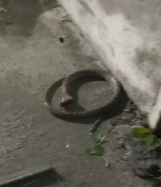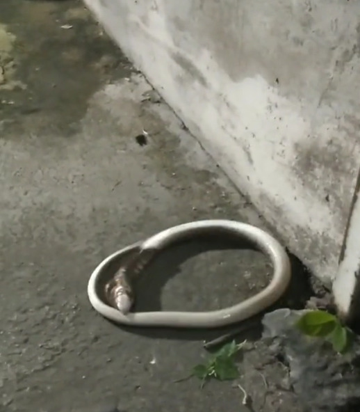 โดยเขาได้เขียนแคปชั่นว่า “#อสรพิษวิทยา #ผสมข้ามสายพันธุ์” ซึ่งภายในวิดีโอจะเห็นได้ว่ามีงูตัวหนึ่ง กำลังหมุนตัวไปมาอย่างแรง อยู่บริเวณพื้นปูน หากมองเผินๆ เหมือนน้องพยายามที่จะลอกคราบ แต่เมื่อซูมดูใกล้ๆ จะเห็นได้ว่า น้องงูกำลังถูกตะขาบกัด และพยายามหมุนตัวเพื่อสะบัดออกเอาตัวรอด แต่ดูเหมือนน้องตะขาบ ได้กัดไปที่บริเวณหัวงูและใช้ขารัดลำตัวอย่างแน่น