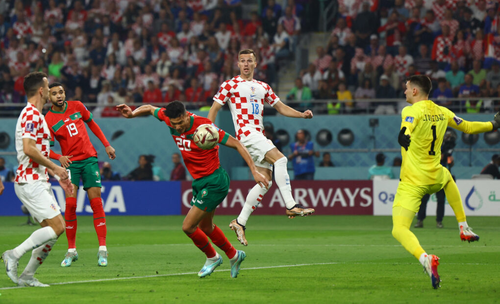 เกมนี้ทั้ง 2 ทีมเปิดฉากลุยเข้าใส่กันตั้งแต่เริ่มเกม และเป็นโครเอเชียที่ได้ประตูออกนำไปก่อนจากการพุ่งโหม่งของ ยอสโก กวาร์ดิโอล ในนาทีที่ 7 ทว่าดีใจได้ไม่นาน โมร็อกโก ก็ตามตีเสมอเป็น 1-1 ได้อย่างทันควันจากลูกโขกของ อัชราฟ ดารี ในนาทีที่ 9