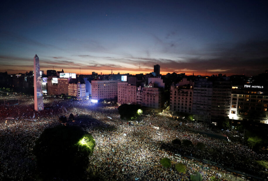 สำนักข่าวต่างประเทศรายงานว่าชาวอาร์เจนตินาหลายแสนคนหลั่งไหลออกมาฉลองคว้าแชมป์โลกที่รอคอยมาตั้งแต่ปี 1986 กันเต็มท้องถนนในกรุงบัวโนสไอเรส ต่างสวมชุดทีมชาติฟ้าขาว อันเป็นเอกลักษณ์ ต่างเฮโลกันออกมาบริเวณใจกลางเมืองหลวงและสถานที่อันเป็นสัญลักษณ์อื่นๆ ภายในไม่กี่นาทีหลังชัยชนะและมีการฉลองกันทั่วทั่วประเทศ