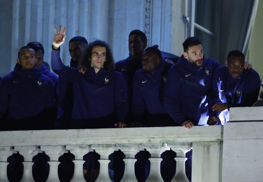 แฟนบอลจุดดอกไม้ไฟ โบกธงฝรั่งเศส และร้องเพลง ‘Allez Les Bleus’ และเพลงชาติฝรั่งเศส ส่วนทีมปรากฏตัวบนระเบียงของโรงแรมโฮเต็ล เดอะ คริยอน