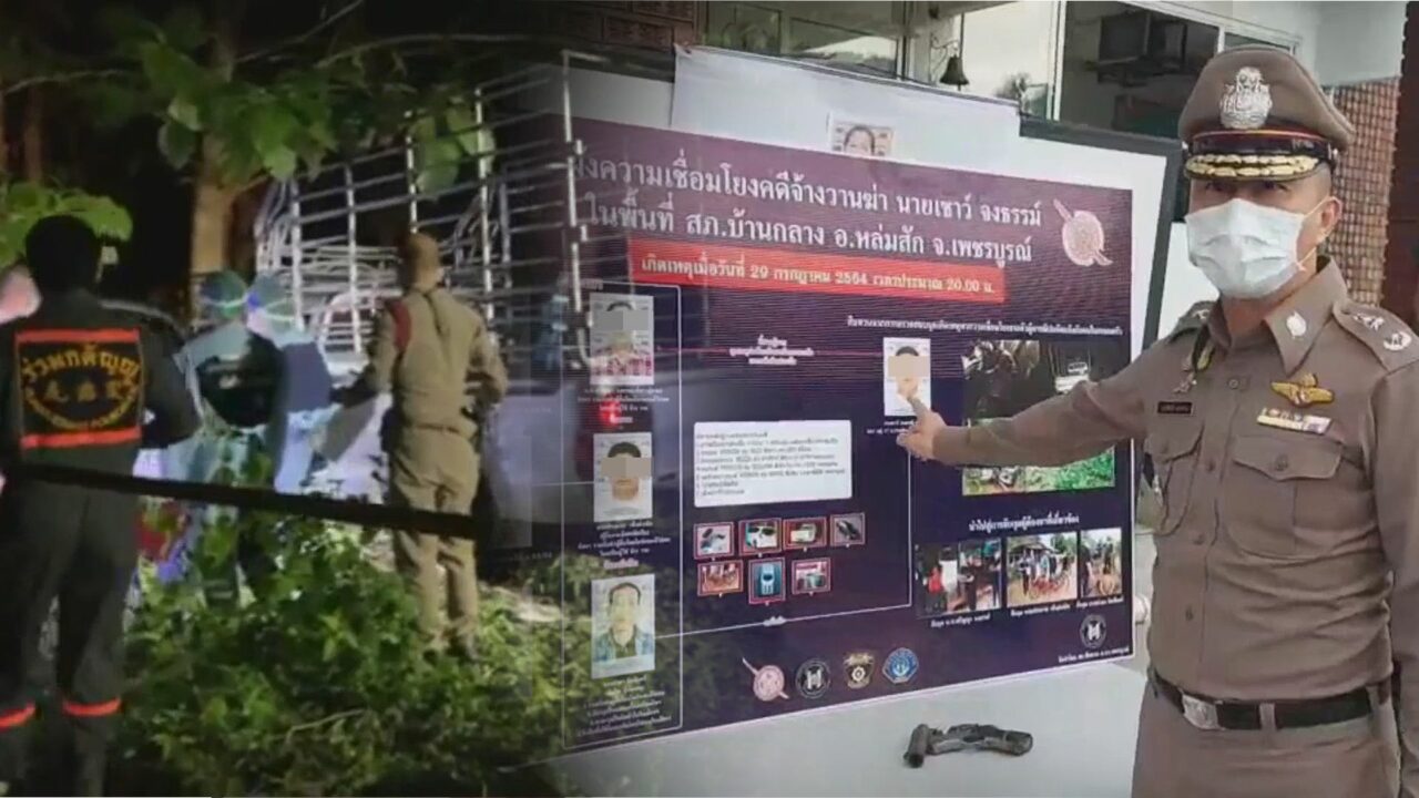 วันที่ 20 ส.ค. พล.ต.ต.อรรถสิทธิ์ สุดสงวน ผบก.ภ.จว.เพชรบูรณ์ พร้อมด้วย พ.ต.อ.ฐเดช กล่อมเกลี้ยง รอง ผบก.ภ.จว.เพชรบูรณ์ ร่วมกันแถลงจับกุม น.ส.ศรัญญา (สงวนนามสกุล) อายุ 52 ปี นายประมวล (สงวนนามสกุล) อายุ 46 ปี และนายอำคา อินจันทร์ อายุ 52 ปี ทั้งหมดเป็นชาว จ.เพชรบูรณ์ ผู้ต้องหาคดีฆ่าและจ้างวานฆ่า นายเชาว์ (สงวนนามสกุล) อายุ 51 ปี เหตุเกิดบริเวณป่าสัก ใกล้ทุ่งนา พื้นที่หมู่ 17 ต.ปากช่อง อ.หล่มสัก จ.เพชรบูรณ์ พื้นที่ สภ.บ้านกลาง จ.เพชรบูรณ์ เมื่อเวลา 20.30 น.วันที่ 29 ก.ค.ที่ผ่านมา