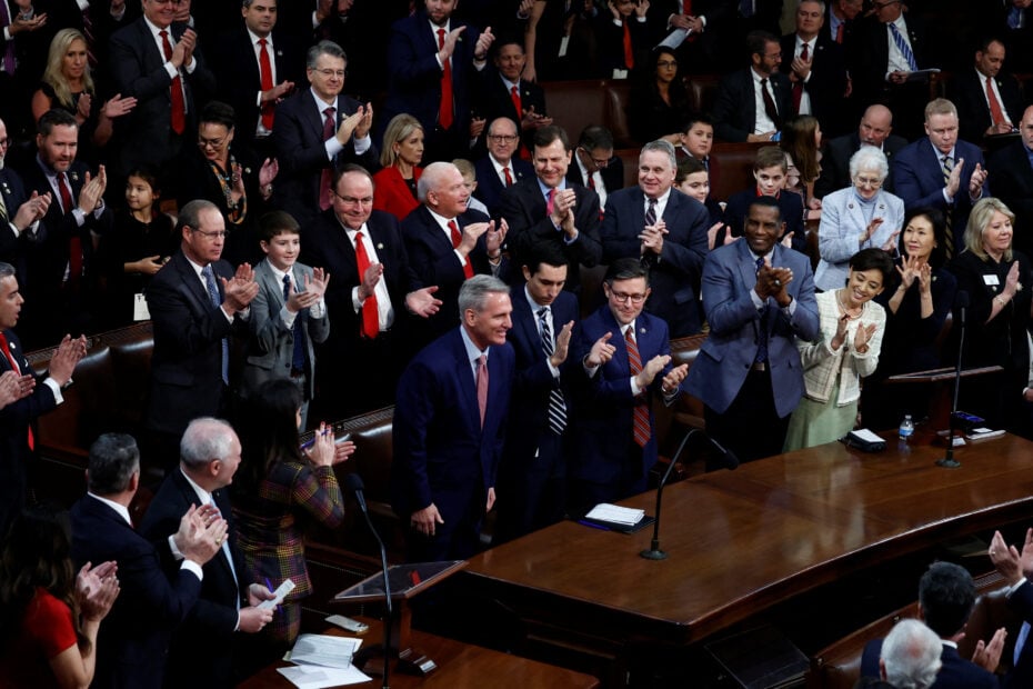 แม้พรรครีพับลิกันกลับมาครองเสียงข้างมาในสภาล่างของสหรัฐได้อีกครั้ง หลังการเลือกตั้งกลางเทอม เมื่อวันที่ 8 พ.ย. ปีที่แล้ว ด้วยเสียงสนับสนุน 222 เสียง ส่วนพรรคเดโมแครตครองเสียงข้างน้อย 213 เสียง อย่างไรก็ตาม ความขัดแย้งภายในพรรครีพับลิกันส่งผลให้ นายเควิน แมคคาร์ธี ซึ่งดำรงตำแหน่งแกนนำของพรรครีพับลิกันในสภาผู้แทนราษฎร และได้รับการเสนอชื่อ “ตามธรรมเนียม” จากพรรค ให้ทำหน้าที่ประธานสภา ยังไม่ได้รับเสียงสนับสนุนถึงเกณฑ์ขั้นต่ำ คืออย่างน้อย 218 เสียง