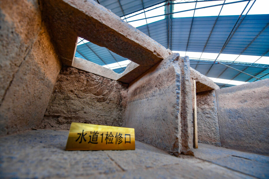 การขุดค้นที่ซากประตูเชียนชิวของวังโบราณ เริ่มต้นเมื่อปี 2564 และต่อมาคณะนักวิจัยค้นพบช่องทางน้ำใต้ดินขนาดใหญ่ อยู่ข้างใต้จัตุรัสของซากประตู