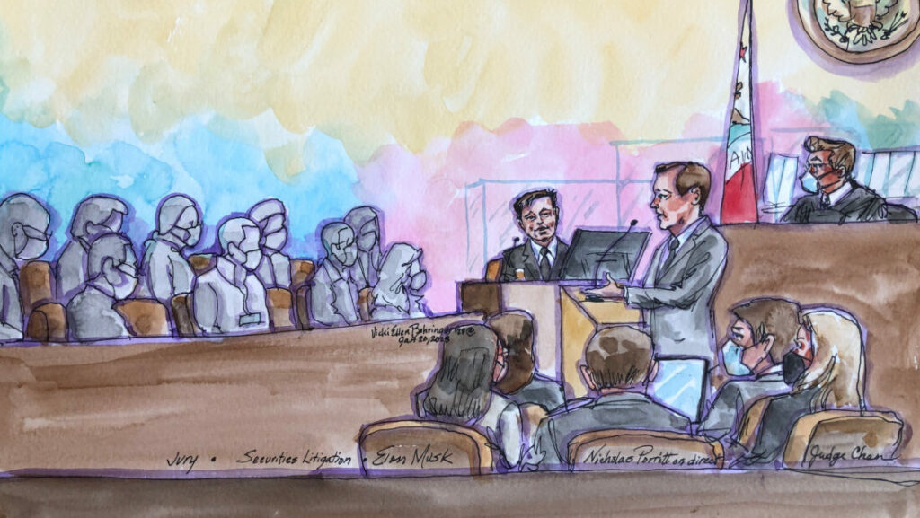 Inside a San Francisco federal court, a battle is playing out between Tesla investors and the company’s CEO Elon Musk over tweets from Musk in 2018 that investors say were 'false' and which cost them millions of dollars https://t.co/93k2tPwaYu pic.twitter.com/RnoR6UWmjD