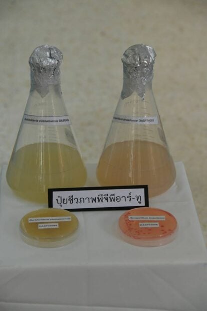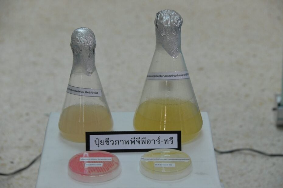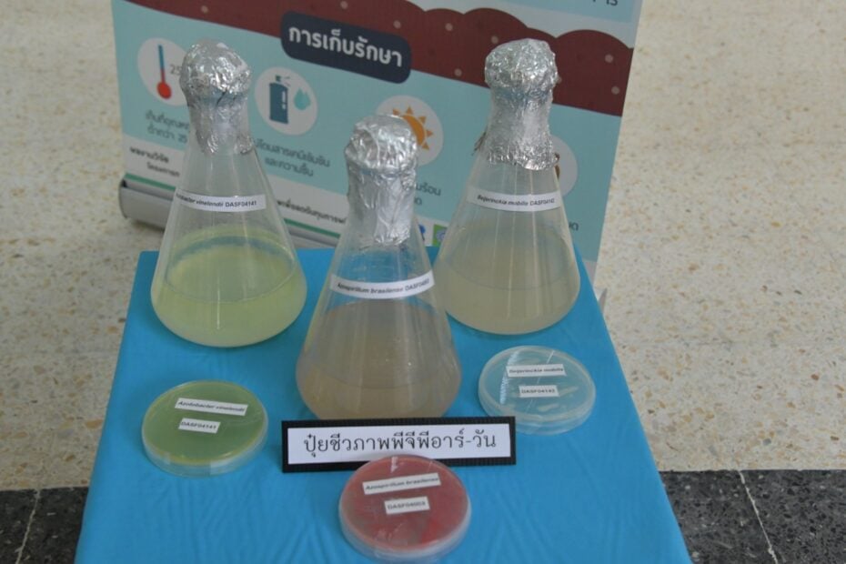 ปุ๋ยชีวภาพพีจีพีอาร์ ประกอบด้วยแบคทีเรียที่อาศัยอยู่ในดินบริเวณรอบรากพืชและช่วยส่งเสริมการเจริญเติบโตของพืช โดยนักวิจัยได้ทำการคัดเลือกแบคทีเรียที่มีความสามารถหลาย ๆ ด้านทั้งการตรึงไนโตรเจน เพิ่มความเป็นประโยชน์ของธาตุอาหารพืช สร้างสารซิเดอโรฟอร์ซึ่งมีคุณสมบัติเพิ่มการนำธาตุเหล็กเข้าสู่เซลล์พืชโดยการแย่งจับธาตุเหล็กบริเวณรอบรากพืช ทำให้เชื้อราโรคพืชไม่สามารถนำธาตุเหล็กไปใช้ได้ รวมทั้งยังสามารถสร้างสารคล้ายฮอร์โมนพืชช่วยในการงอกของรากและเพิ่มปริมาณรากขนอ่อน สร้างสารปฏิชีวนะที่มีฤทธิ์ต้านเชื้อราสาเหตุโรคพืชได้ ซึ่งการที่แบคทีเรียมีบทบาทที่เป็นประโยชน์ต่อพืชได้พร้อมกันหลายอย่างนี้ จึงได้ทำการศึกษาวิจัยและพัฒนาเป็นผลิตภัณฑ์ปุ๋ยชีวภาพีจีพีอาร์ โดยมีเป้าหมายเพื่อส่งเสริมให้เกษตรกรนำไปใช้ทดแทนหรือใช้ร่วมกับปุ๋ยเคมี เพื่อลดต้นทุนการผลิต และช่วยเพิ่มปริมาณและคุณภาพให้กับผลผลิตพืชทั้งนี้ปุ๋ยพีจีพีอาร์สูตรแรกผลิตขึ้นเมื่อปี 2546 ชื่อว่า พีจีพีอาร์-วัน ใช้สำหรับข้าวโพดและข้าวฟ่างและพืชผักสมุนไพร โดยใช้คลุกเมล็ดก่อนปลูก หรือใช้ร่วมกับปุ๋ยหมักคลุกเคล้าให้เข้ากันตามอัตราที่แนะนำสำหรับรองก้นหลุมก่อนปลูก ปุ๋ยพีจีพีอาร์สูตรที่ 2 ใช้ชื่อว่า ปุ๋ยพีจีพีอาร์-ทู สำหรับข้าว ซึ่งได้รับความนิยมจากเกษตรสูงเช่นเดียวกัน เพราะสามารถใช้เพิ่มผลผลิตได้กับข้าวทุกพันธุ์ โดยใช้คลุกกับเมล็ดข้าวก่อนปลูกหรือใช้คลุกกับปุ๋ยหมักรองพื้นก็ได้ และผลิตภัณฑ์ปุ๋ยพีจีพีอาร์ล่าสุด คือ ปุ๋ยพีจีพีอาร์-ทรี ใช้สำหรับอ้อยและมันสำปะหลัง ใช้ร่วมกับปุ๋ยหมักหว่านรองพื้น ใช้ฉีดพ่นลงบนท่อนพันธุ์อ้อย หรือใช้แช่ท่อนพันธุ์มันสำปะหลังแล้วจึงนำไปปลูก