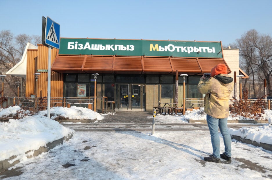 อนึ่ง แมคโดนัลด์ เปิดให้บริการสาขาแรกในคาซัคสถาน ที่กรุงอัสตานา เมื่อปี 2559 และขยายกิจการไปตามเมืองใหญ่อีก 24 แห่งทั่วประเทศ อย่างไรก็ตาม แมคโดนัลด์เป็นหนึ่งในบริษัทข้ามชาติรายใหญ่ของสหรัฐ ซึ่งถอนธุรกิจออกจากรัสเซีย หลังสงครามในยูเครนปะทุ เมื่อวันที่ 24 ก.พ. 2565 แต่ตลอดระยะเวลาที่ผ่านมา แมคโดนัลด์ไม่เคยมีท่าทีอย่างเป็นทางการ เกี่ยวกับการใช้นโยบายแบบเดียวกัน กับประเทศเพื่อนบ้านหรือประเทศซึ่งเป็นพันธมิตรกับรัฐบาลมอสโก.