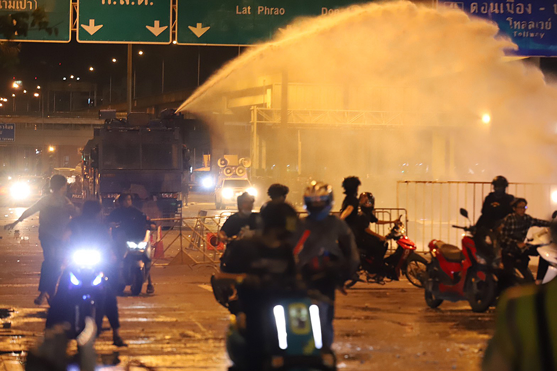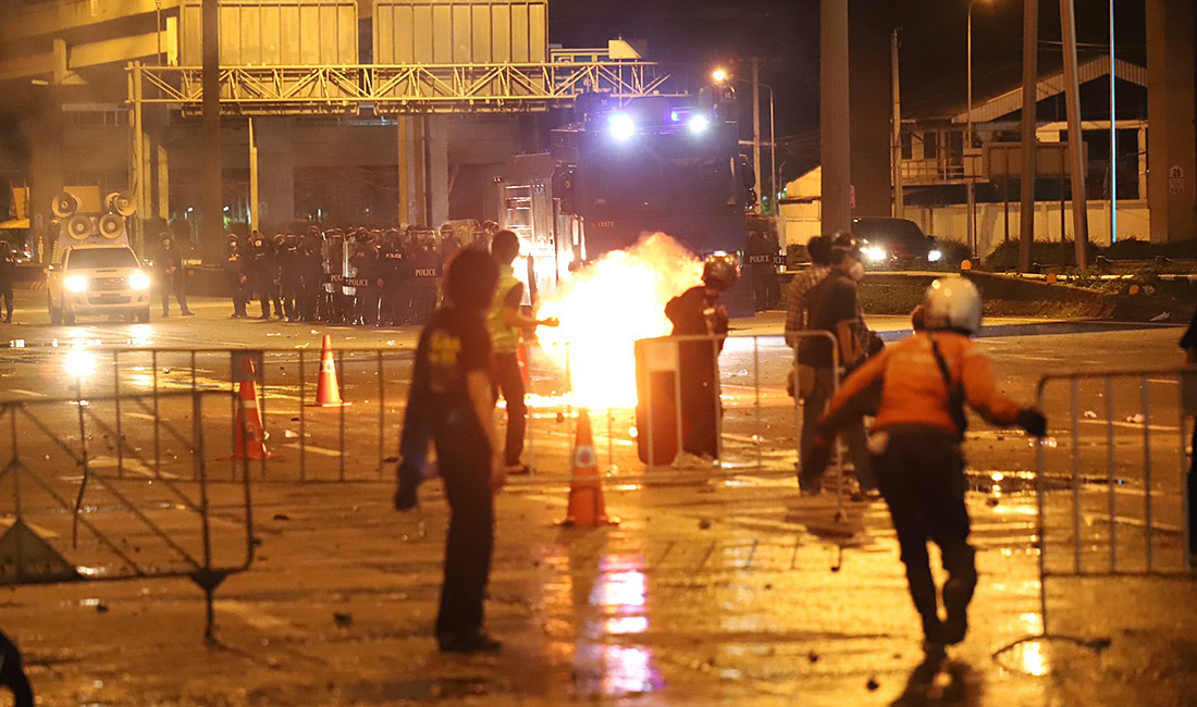 ความเสียหายอันเป็นการกระทำที่ก่อให้เกิดความวุ่นวายขึ้นในบ้านเมือง ทั้งนี้ ระหว่างเกิดเหตุการณ์ ตำรวจได้ประกาศให้กลุ่มผู้ชุมนุมมั่วสุมเลิกการชุมนุมมั่วสุม แต่กลับไม่ยกเลิก ตำรวจควบคุมฝูงชนจึงได้เข้าควบคุมสถานการณ์และรักษาความสงบเรียบร้อยในพื้นที่บริเวณ ด่านเก็บค่าผ่านทาง แขวงสามเสนใน เขตพญาไท กทม. แต่ปรากฏว่าในระหว่างที่เจ้าพนักงานเข้าปฏิบัติการเพื่อควบคุมพื้นที่รักษาความสงบและจับกุมผู้กระทำความผิดนั้น กลุ่มผู้ชมนุมบางส่วนได้ใช้กำลังต่อสู้โดยขว้างปา ยิงลูกแก้ว ของแข็ง ประทัด และระเบิดชนิดต่างๆ เข้าใส่ตำรวจควบคุมฝูงชนจนเป็นเหตุให้บาดเจ็บเพิ่มหลายนาย
