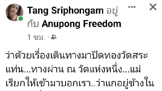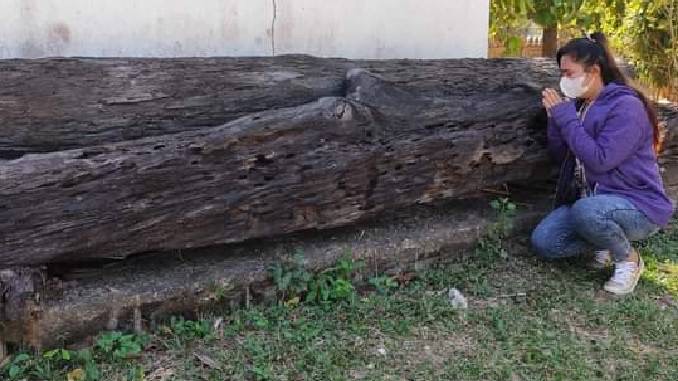 น.ส.ปราณี หรือคุณแตง ศรีโพธิงาม เจ้าของโพสต์ กล่าวว่า ตนกับครอบครัวขับรถจะไปเที่ยวงานปิดทองที่วัดสระแท่น ต.ทุ่งโพธิ์ อ.นาดี ขณะกำลังขับผ่านวัดหนองแหน ได้ยินเสียงคล้ายผู้หญิงเรียก บอกให้แวะมาช่วยทำบุญแม่ตะเคียนที่วัดนี้ อีกทั้งเหมือนมีอะไรดลใจให้แวะ จึงขับรถย้อนมาดู ก็พบว่า มีต้นตะเคียน 2 ต้น วางนอนอยู่ข้างศาลาจริง จึงเข้าไปไหว้และบอกว่าจะมาร่วมทำบุญกับทางวัดให้ ซึ่งเชื่อว่าที่ได้ยินเพราะตนก็มีองค์ปู่นาคราช ที่บูชาและเคารพนับถือมาหลายปี จึงคอยช่วยเหลือผู้ที่ตกทุกข์ได้ยากหรือใครดวงตกก็จะช่วยเสริมดวงให้และแนะนำให้ทำบุญเพื่อสะเดาะเคราะห์ตามกำลังศรัทธาต่อไป