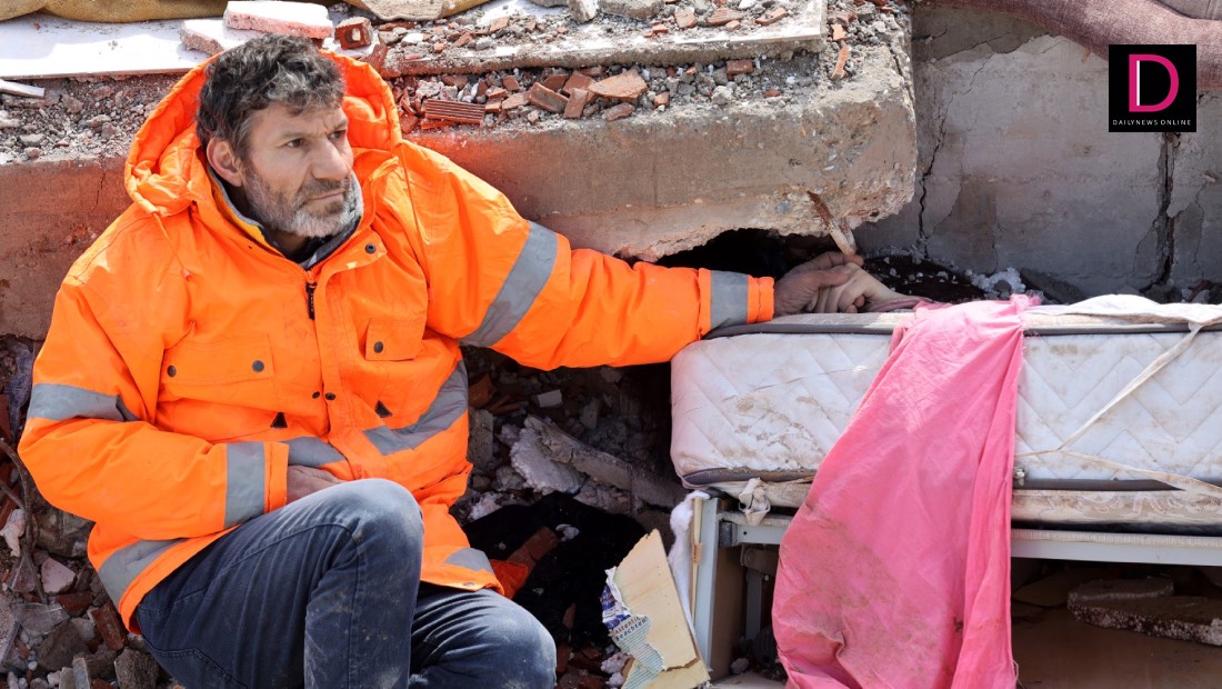 ภาพแห่งความสูญเสียจากเหตุการณ์แผ่นดินไหวระดับ 7.8 แมกนิจูด ในเขตตุรกี-ซีเรีย เมื่อวันที่ 6 ก.พ. 2566 ยังคงปรากฏสู่สายตาชาวโลกเพิ่มมากขึ้นเรื่อย ๆ และหนึ่งในนั้นคือภาพสุดสะเทือนใจของชายชาวตุรกี ซึ่งกำลังนั่งมองเหม่อพร้อมกับกุมมือเล็ก ๆ ที่โผล่ออกมาจากซากตึกถล่ม