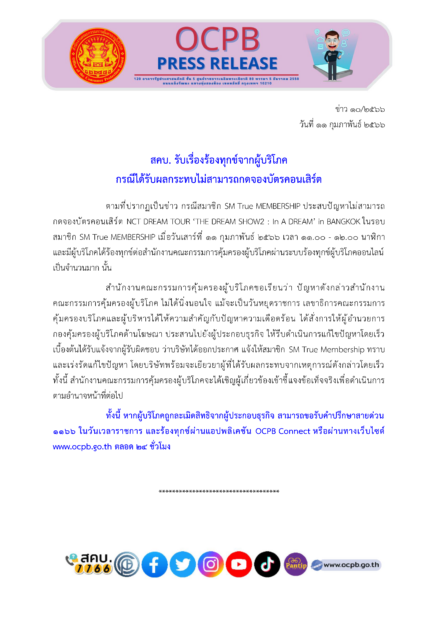 อย่างไรก็ตาม ทางด้าน สำนักงานคณะกรรมการคุ้มครองผู้บริโภค (สคบ.) ได้ออกมาเคลื่อนไหวเกี่ยวกับเรื่องดังกล่าว ภายหลังจากที่ได้รับร้องเรียนเป็นจำนวนมาก โดยระบุว่า “สำนักงานคณะกรรมการคุ้มครองผู้บริโภคขอเรียนว่า ปัญหาดังกล่าวสำนักงานคณะกรรมการคุ้มครองผู้บริโภค ไม่ได้นิ่งนอนใจ แม้จะเป็นวันหยุดราชการ” เลขาธิการคณะกรรมการคุ้มครองบริโภคและผู้บริหารได้ให้ความสำคัญกับปัญหาความเดือดร้อน ได้สั่งการให้ผู้อำนวยการกองคุ้มครองผู้บริโภคด้านโฆษณา ประสานไปยังผู้ประกอบธุรกิจ ให้รีบดำเนินการแก้ไขปัญหาโดยเร็ว