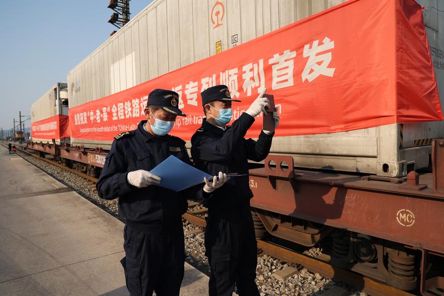 อนึ่ง การขนส่งสินค้าข้ามพรมแดนบนทางรถไฟจีน-ลาว ครอบคลุมลาว ไทย เมียนมา และอีกหลายประเทศใกล้เคียง เป็นส่วนหนึ่งของแผนริเริ่ม “หนึ่งแถบหนึ่งเส้นทาง” ( บีอาร์ไอ ) โดยปัจจุบันมีการขนส่งสินค้ามากกว่า 1,200 ประเภท และปริมาณการขนส่งสินค้าโดยรวมสูงเกิน 2.5 ล้านตัน.