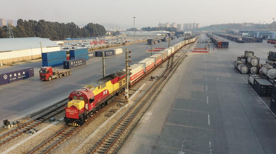 สำนักข่าวซินหัวรายงานจากเมืองคุนหมิง ประเทศจีน เมื่อวันที่ 12 ก.พ. ว่า รถไฟสินค้าระหว่างประเทศจีน-ลาว ซึ่งบรรทุกตู้คอนเทนเนอร์แช่เย็นผักสดราว 280 ตัน จำนวน 19 ตู้ เดินทางออกจากสถานีรถไฟ ในเมืองคุนหมิง ซึ่งเป็นเมืองเอกของมณฑลยูนนาน อยู่ทางตะวันตกเฉียงใต้ของจีน เมื่อวันที่ 7 ก.พ. ที่ผ่านมา ถือเป็นหมุดหมายเปิดให้บริการรถไฟสินค้า “จีน-ลาว-ไทย” แบบไปและกลับ