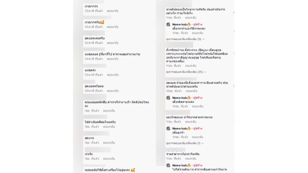 เป็นอีกหนึ่งเรื่องราวที่น่าชื่นชมอย่างมาก เมื่อมีผู้ใช้ Tiktok @namokubka เป็นคุณแม่ที่โพสต์คลิปตามสืบเบาะแสจาก สัญญาณ GPS จากโทรศัพท์มือถือของลูกชาย ที่ถูกขโมยไปขาย โดยระบุข้อความว่า..