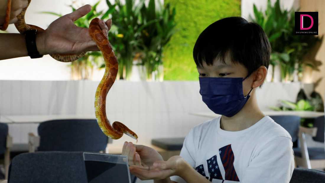 WATCH: Customers, including children, can hold and pet snakes and lizards while ordering drinks and food at Yap Ming Yang’s reptile cafe in Malaysia https://t.co/F1ix6NEdig pic.twitter.com/k3McvILl0i