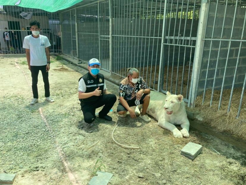 เกี่ยวกับเรื่องนี้ เมื่อวันที่ 2 ก.พ. นายคเชนทร์ เที่ยงมณี ปลัดอำเภอหัวหน้าฝ่ายความมั่นคงอำเภอบางปะกง ลงตรวจสอบที่บ้านพักแห่งหนึ่งในพื้นที่ อ.บางปะกง จ.ฉะเชิงเทรา เพื่อขอเข้าตรวจสถานที่หลังจากรับแจ้งว่า มีการเลี้ยงสิงโตขาวเอาไว้เพื่อจำหน่าย โดยมี นายโยธิน นากกร แสดงตัวเป็นเจ้าของบ้าน ก่อนพาไปดูกรงที่ว่างเปล่า ไม่มีสิงโตแม้แต่ตัวเดียว จากนั้นได้เปิดเผยว่า ได้ย้ายสิงโตทั้งหมดไปเลี้ยงยัง ต.ปากน้ำ อ.บางคล้า นานแล้ว ภายหลังทางเจ้าของฟาร์มได้พาคณะปลัดอำเภอฯ เดินทางไปตรวจฟาร์มที่เลี้ยงเอาไว้ โดยพบว่าห่างไกลจากชุมชน และปฏิบัติตามขั้นตอนกฎหมายอย่างถูกต้อง