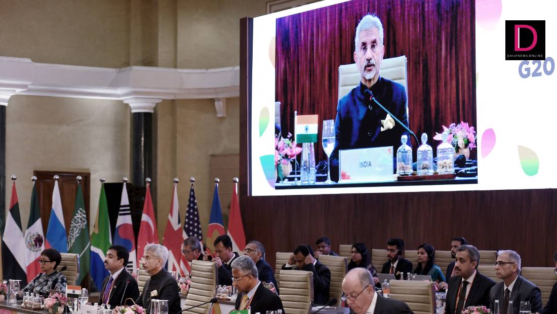 สำหรับการประชุมรัฐมนตรีต่างประเทศจี20 เกิดขึ้นเพียงสัปดาห์เดียว ต่อจากการประชุมรัฐมนตรีคลังจี20 เมื่อปลายเดือนที่แล้ว อย่างไรก็ตาม ที่ประชุมไม่สามารถเผยแพร่แถลงการณ์ร่วมกันได้ โดยมีเพียง “คำแถลงสรุปผลการหารือ” จากอินเดีย ซึ่งทำหน้าที่ประธานจี20 ประจำปีนี้เท่านั้น เนื่องจากมีรายงานว่า จีนไม่เห็นด้วยกับเนื้อหาในแถลงการณ์ร่วม.