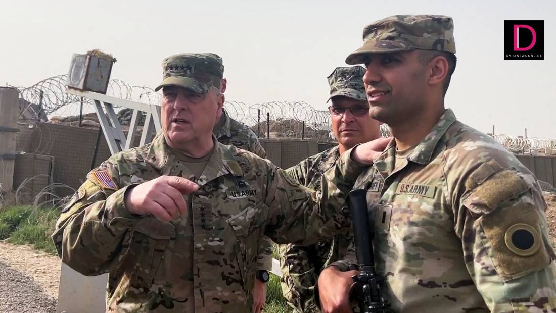 สำนักข่าวต่างประเทศรายงานจากกรุงวอชิงตัน สหรัฐอเมริกา เมื่อวันที่ 6 มี.ค. ว่า กระทรวงกลาโหมสหรัฐรายงานว่า พล.อ.มาร์ค มิลลีย์ ประธานคณะเสนาธิการทหารร่วมสหรัฐ ลงพื้นที่ “ฐานทัพแห่งหนึ่งของสหรัฐ” ตั้งอยู่ทางตะวันออกเฉียงเหนือของซีเรีย เมื่อสัปดาห์ที่แล้ว โดยข้อมูลเบื้องต้นระบุว่า ฐานทัพแห่งนี้มีทหารอเมริกันประจำการอยู่ประมาณ 900 นาย