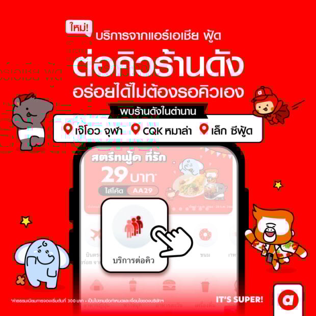 @ airasia Super App เปิดบริการใหม่ “บริการต่อคิว” ให้คุณไม่พลาดมื้ออร่อยได้แล้ววันนี้ ตอบโจทย์สายกินทั้งชาวไทยและนักท่องเที่ยวต่างชาติ ในแบบที่คุณไม่ต้องเสียเวลาคอยคิว ง่ายๆ เพียงเข้าผ่านแอปพลิเคชัน airasia Super App พร้อมจองคิวไปทานอาหารร้านอร่อยในเวลา 18.00-20.00 น. ล่วงหน้าได้ทุกวันแล้ววันนี้ ประเดิม 5 ร้านแรก CQK HOTPOT, ร้านเจ๊โอว, ร้านเล็ก ซีฟู้ด เยาวราช, คุณเปิ้ล หมูกระทะ และอี้จา สุกี้หม่าล่า เปิดแอร์เอเชีย ซูเปอร์แอพ แล้วจองคิวเลย! https://app.airasia.com/F4uy/j076vmwb