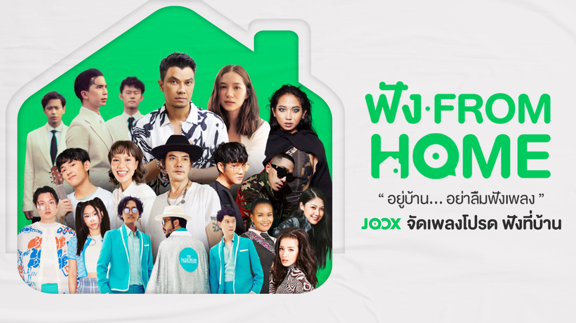 โดยกิจกรรม และแคมเปญสร้างสรรค์ที่ JOOX ได้ส่งต่อความสุขให้คนดนตรี และคนไทย ได้แก่ JOOX ฟัง from Home #อยู่บ้าน…อย่าลืมฟังเพลง จับมือศิลปิน พร้อมค่ายเพลงทั่วประเทศ อาทิ GMM GRAMMY, HolyFox Records, LOVEiS Entertainment ฯลฯ และศิลปินอิสระอีกมากมาย ร่วมกระตุ้นชวนแฟนเพลง คลายเครียดด้วยการเปิด JOOX และกลับมาฟังเพลงของศิลปินคนโปรดของพวกเขาอีกครั้ง โดยได้คัดเพลงบทเพลงฮิตรวมเป็นเพลย์ลิสต์ Best of… ของหลากหลายศิลปิน มากกว่า 170 ศิลปิน มากกว่า 170 เพลย์ลิสต์ ทั้งยังมอบ JOOX VIP ให้เหล่าศิลปินได้นำไปแจกแฟนๆ ให้ฟังเพลงที่บ้าน โดยเป้าหมายของการจัดแคมเปญ “JOOX ฟัง from Home” ที่นอกเหนือจากการชวนทุกคนมาฟังเพื่อผ่อนคลายแล้ว ทุกครั้งที่เกิดการฟังผ่านการสตรีมมิ่งนั่นเท่ากับการสนับสนุนศิลปินให้มีรายได้ และยิ่งได้มากขึ้นเมื่อฟังแบบ VIP มาร่วมเป็นส่วนหนึ่งในการช่วยเหลือบรรดาศิลปินให้ผ่านพ้นช่วงเวลาอันยากลำบากนี้ไปด้วยกัน