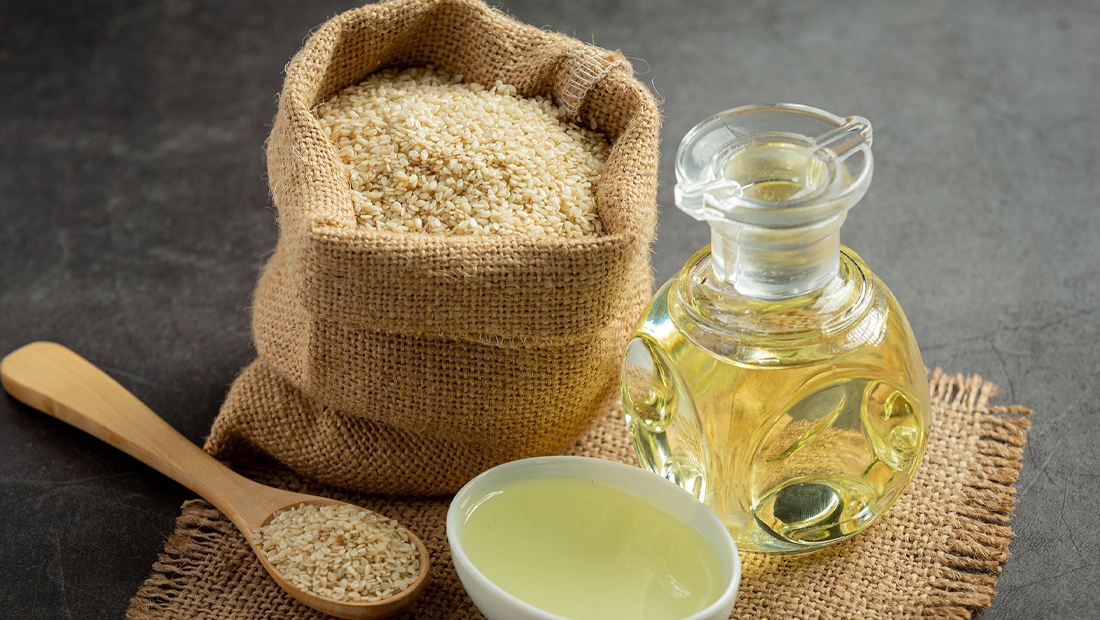 9.น้ำมันงาขาว (Sesame oil) อุดมไปด้วยแคลเซียม วิตามินอี ไขมันที่ดีต่อสุขภาพ และลิกแนน มีทองแดงค่อนข้างสูง ซึ่งเป็นแร่ธาตุที่ทําหน้าที่เป็นสารตั้งต้นของฮอร์โมนเอสโตรเจน ช่วยปรับสมดุลฮอร์โมนเอสโตรเจนและโปรเจสเตอโรน และเป็นแหล่งแคลเซียมที่ดี ซึ่งมีความสําคัญต่อการบํารุงรักษาและซ่อมแซมเนื้อเยื่อการสืบพันธุ์ และมวลกระดูกของเพศหญิง จากผลการศึกษางานวิจัยเกี่ยวกับการรับประทานงา และการส่งผลต่อฮอร์โมนเพศ สถานะของสารต้านอนุมูลอิสระและไขมันในเลือดในสตรีวัยทอง จากแผนกสูตินรีเวชวิทยา มหาวิทยาลัย National Taiwan Normal ประเทศใต้หวัน พบว่า การกินเซซามินทำให้ความเข้มข้นของไขมันในพลาสมาลดลง 5% และ ปริมาณไขมันชนิดร้าย LDL-C ลดลง 10% อย่างมีนัยสำคัญ และช่วยในการปรับปรุงการดูดซึม g-tocopherol หรือ วิตามินอี ซึ่งเป็นวิตามินที่ละลายในไขมันได้อย่างมีประสิทธิภาพ ช่วยต้านอนุมูลอิสระ ทำให้เม็ดเลือดแดงแข็งแรง ป้องกันผนังเซลล์ถูกทำลาย