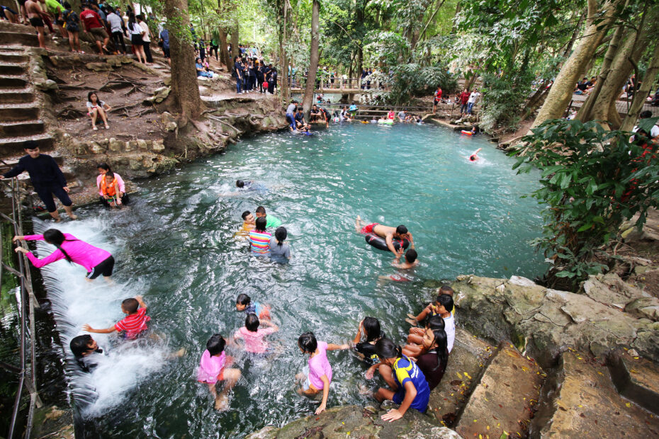 เมื่อวันที่ 28 มี.ค. ผู้สื่อข่าวรายงานว่า สภาพอากาศร้อนประชาชนจำนวนมาก พาครอบครัว ลูกหลานมาท่องเที่ยวหลบร้อน มาเล่นน้ำผุดธรรมชาติ ริมถนนธนะรัชต์ กม.15 ทางขึ้นอุทยานแห่งชาติเขาใหญ่ บ้านท่าช้างเหนือ หมู่ 16 ต.หมูสี อ.ปากช่อง จ.นครราชสีมา ที่ผุดออกจากพื้นใต้ภูเขาลึก มีสีเขียวมรกตอย่างมหัศจรรย์ และใสสะอาด โดยไหลตลอดทั้งปี อยู่คู่ผืนป่าและหมู่บ้าน มาพร้อมผืนป่าดงพญาเย็น เขาใหญ่ และเป็นแหล่งท่องเที่ยวที่ขึ้นชื่อ เป็นที่รู้จักทั้งนักท่องเที่ยวชาวต่างชาติและคนไทยทั่วประเทศ มาเขาใหญ่ต้องไปดูบ่อน้ำผุดธรรมชาติ ซึ่งช่วงนี้โรงเรียนหลายแห่งยังปิดเทอมอยู่ และเป็นที่ชื่นชอบของเด็กๆ ที่ได้มาเล่นน้ำเพื่อคลายร้อน