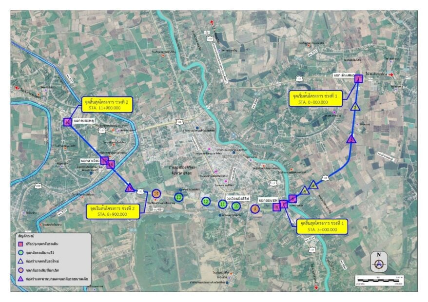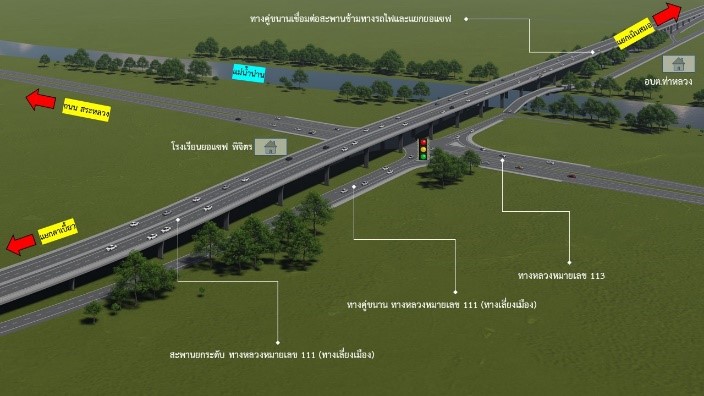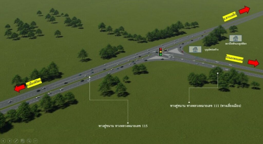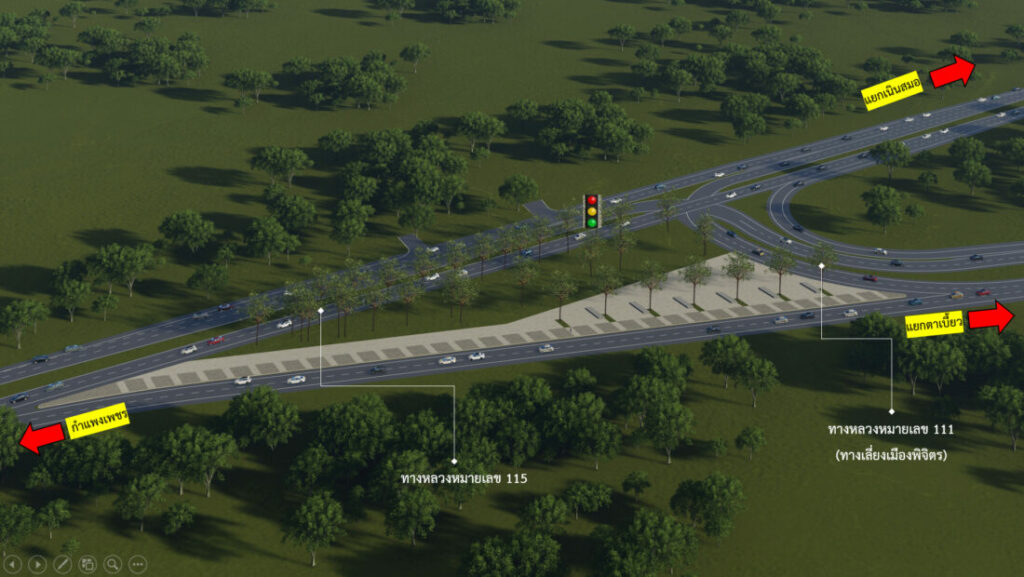 รูปแบบจะดำเนินการขยายถนนจากเดิม 2 ช่องจราจร เป็น 4 ช่องจราจร หรือมากกว่า รวมงานปรับปรุงทางแยกแก้ไขปัญหาการจราจรติดขัด จำนวน 4 แห่ง ได้แก่ 1.ทางแยกเนินสมอ ปรับปรุงเป็นทางแยกระดับพื้นควบคุมโดยสัญญาณไฟจราจร 2.ทางแยกยอแซฟ เป็นการปรับปรุงทางแยกต่างระดับร่วมกับสะพานยกระดับยาวต่อเนื่องข้ามทางรถไฟและแม่น้ำน่าน โดยออกแบบเป็นสะพานยกระดับตามแนวทางเลี่ยงเมืองพิจิตร ส่วนทางแยกระดับดินเป็นทางแยกสัญญาณไฟจราจร 3.ทางแยกตาเบี้ยว ปรับปรุงเป็นทางแยกต่างระดับ โดยออกแบบเป็นสะพานยกระดับบน ทล.111 (ทางเลี่ยงเมืองพิจิตร) ส่วนทางแยกระดับดินเป็นทางแยกสัญญาณไฟจราจร และ 4.ทางแยกดงชะพลู ปรับปรุงเป็นทางแยกระดับดินควบคุมโดยสัญญาณไฟจราจร