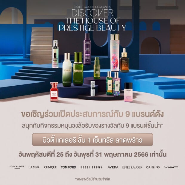 @ เซ็นทรัล จับมือ เอสเต ลอเดอร์ จัดแคมเปญ “Central x Estée Lauder Companies – Discover The House of Prestige Beauty” ชวนเหล่าบิวตี้เลิฟเวอร์มาช้อปสุดคุ้มกับบิวตี้ไอเทมระดับเพรสทีจ จาก 9 แบรนด์ดังในเครือ ได้แก่ Estée Lauder, La Mer, Jo Malone London, TOM FORD BEAUTY, MAC, Bobbi Brown, Clinique, Origins, Aveda พร้อมรับของขวัญสุดเอ็กซ์คลูซีฟ และโปรโมชันทั้งลดทั้งแถมแบบจัดเต็ม พิเศษ! ร่วมสัมผัสประสบการณ์ถ่ายภาพกับมุมบิวตี้ไอเทมแบบปังๆ ให้โซเชียลทัก พร้อมกิจกรรมให้ร่วมสนุกเพื่อรับฟรี! ผลิตภัณฑ์ขนาดทดลองและของขวัญสุดพิเศษมากมาย ที่ชั้น 1 แผนกบิวตี้ แกเลอรี ห้างเซ็นทรัลลาดพร้าว ตั้งแต่วันที่ 25 พ.ค. 66 – 31 พ.ค. 66 และสามารถช้อปโปรโมชันสุดพิเศษของแบรนด์ในเครือเอสเต ลอเดอร์ คอมพานีส์ ได้ที่ห้างเซ็นทรัล, ห้างโรบินสันทุกสาขา, Central App และทุกช่องทางการช้อปสุดสะดวกของห้าง ดูรายละเอียดเพิ่มเติมคลิก https://www.facebook.com/CentralDepartmentStore
