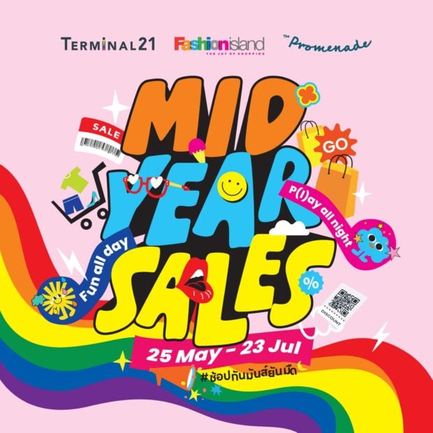 @ เทอร์มินอล21 จับมือ แฟชั่นไอส์แลนด์ และ เดอะพรอมานาด ชวนนักช้อปลุยปรากฏการณ์ Super Sale แห่งปี กับแคมเปญ “Mid Year Sale #ช้อปกันมันส์ยันมืด” รวมทุกดีลโปรโมชั่น ส่วนลดแบรนด์ดัง ร้านอาหารจัดเต็ม ลุ้นรับของรางวัลพิเศษและความบันเทิงขีดสุด การรวมตัวครั้งสำคัญของ 6 ศูนย์การค้า ร่วมลดกระหน่ำกลางปี สูงสุดถึง 80% พร้อมรับความคุ้มค่ากับ 3 ต่อ ทั้งลุ้นรับสิทธิจับสลากรับของรางวัล และของสมนาคุณมากมาย พร้อมรับเครดิตเงินสูงสุด 15% จากธนาคารร่วมรายการ และสิทธิพิเศษสำหรับสมาชิก T21 Reward รับพอยท์ x2 พบความสนุก ช้อปสุดมันส์ ตั้งแต่วันที่ 25 พฤษภาคม-23 กรกฎาคม 2566 นี้