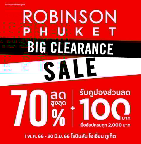 @ โรบินสัน จัดเต็มกิจกรรมความสนุกแบบจุก ๆ เอาใจครอบครัวนักช้อปทุกไลฟ์สไตล์ทั่วไทย ที่ห้างโรบินสันทุกสาขา ตลอดเดือน พ.ค. 66 ไม่ว่าจะเป็น “Robinson Jeans Fest” งานที่รวบรวมยีนหลากรุ่น หลายสไตล์มาไว้ด้วยกัน พร้อมเอ็กซ์คลูซีฟกับส่วนลดสูงสุด 70% ที่ห้างโรบินสัน อยุธยา ระหว่างวันที่ 18-31 พ.ค. 66, “Robinson Phuket Big Clearance Sale” ขนทัพสินค้าทุกชั้น ทุกแผนกมาลดจัดหนักสูงสุด 70% แลกรับคูปองแทนเงินสด 100 บาท ตั้งแต่วันนี้-30 มิ.ย. 66, “Robinson Anniversary” ปิดท้ายฉลองใหญ่วันครบรอบ ห้างโรบินสัน กาญจนบุรี 10 ปี พิเศษ! สำหรับลูกค้าที่ช้อปครบ 3,000 บาท รับทันที! Surprise Bag ลวดลายลิมิเต็ด ติดตามรายละเอียดเพิ่มเติมคลิก www.facebook.com/RobinsonDepartmentStore