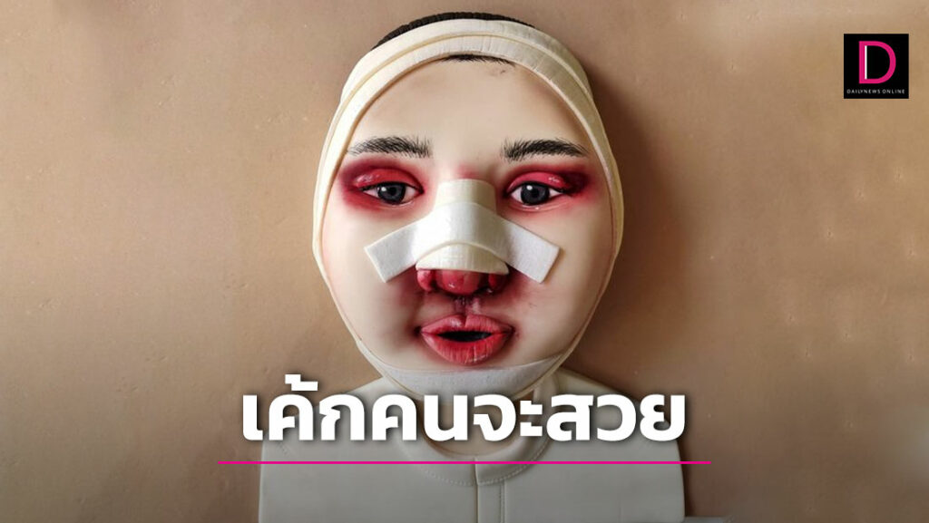 กลายเป็นที่ฮือฮาอย่างมากบนโลกออนไลน์ เมื่อผู้ใช้เฟซบุ๊ก Nattaporn Khuntivongvarn เจ้าของร้าน Sweet Me Bakery ได้โพสต์ภาพเค้กไอเดียเก๋ๆ ลงในกลุ่ม เบเกอรี่พอเพียง ซึ่งเป็นเค้กรูปใบหน้าหลังศัลยกรรม แบบเพิ่งออกจากห้องผ่าตัด ยังมีผ้าพันแผลรอบใบหน้า พร้อมรอยบวมช้ำจากมีดหมอตามจุดต่างๆ เรียกได้ว่าเก็บทุกรายละเอียดเลยจริงๆ